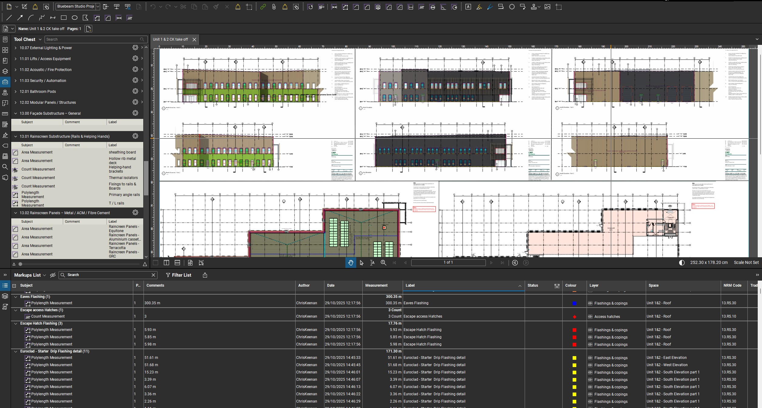 Once the tender scope has been reviewed and clarified, we complete a detailed façade take-off using Bluebeam.